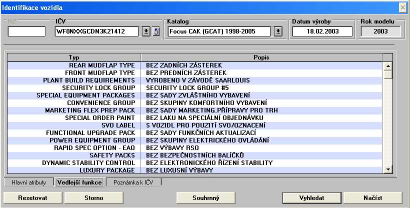 Dekódování VIN - čti důležité info str. 1, body 1 až 8 !