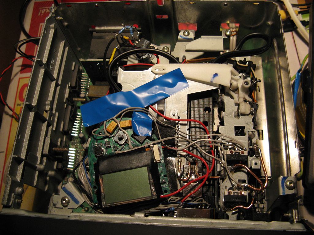 Já jsem šel ale ještě trochu dál a do rádia jsem místo kazety zabudoval MP3 přehrávač na SD karty. Musel jsem jen vyřešit pár věcí, jako je napájení 1,5V (IO LM317 je napojený na výstup 12V z rádia určeného zřejmě pro anténu resp. její zesilovač), takže je pod napětím jen když je rádio zapnuté. Pak jsem se musel napojit na ovládání přehrávače, použil jsem tlačítko CD na rádiu a pak tlačítka původně na ovládání kazety, ale tam jsem musel dodělat mikrospínače (jsou z PC myši). Vlastní čtečku SD karet jsem musel vyvést z přehrávače, aby takhle pěkně trčela z šachty pro kazetu, použil jsem starou nefuknční čtečku karet, ze které jsem oškrábal veškerou elektroniku, takže plní jen funkci konektoru. Vedle zabudovaného MP3 přehrávače mám ještě vyvedený AUX vstup, sloučil jsem oba signály přes odpory asi 1k, pak to jde do kondenzátoru 1uF a pak do IO v rádiu. Uvnitř je kazeta, takže rádio má informaci z příslušnýho spínače (ani přesně nevím, který to je) a přepínání na AM/FM rádio se dělá tlačítkem AM/FM a na kazetu tlačítkem AMS. Motor kazeťáku jsem odpojil a úplně vyhodil, mechaniku už nikdo nespraví, ale stejně byla vadná, už jsem tak to rádio koupil.
