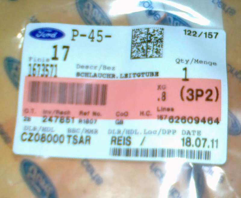 Tak vnesu do toho trochu jasno exisistuji 2 provedeni a to s kulatym filtrem pak se necha odbocka koupit zvlast origo ve fordu pod obednacim cislem 1673573 za cenu 564kc, pak je verze s hranatým filtrem a tam to prodavaji jako komplet za 2156kč