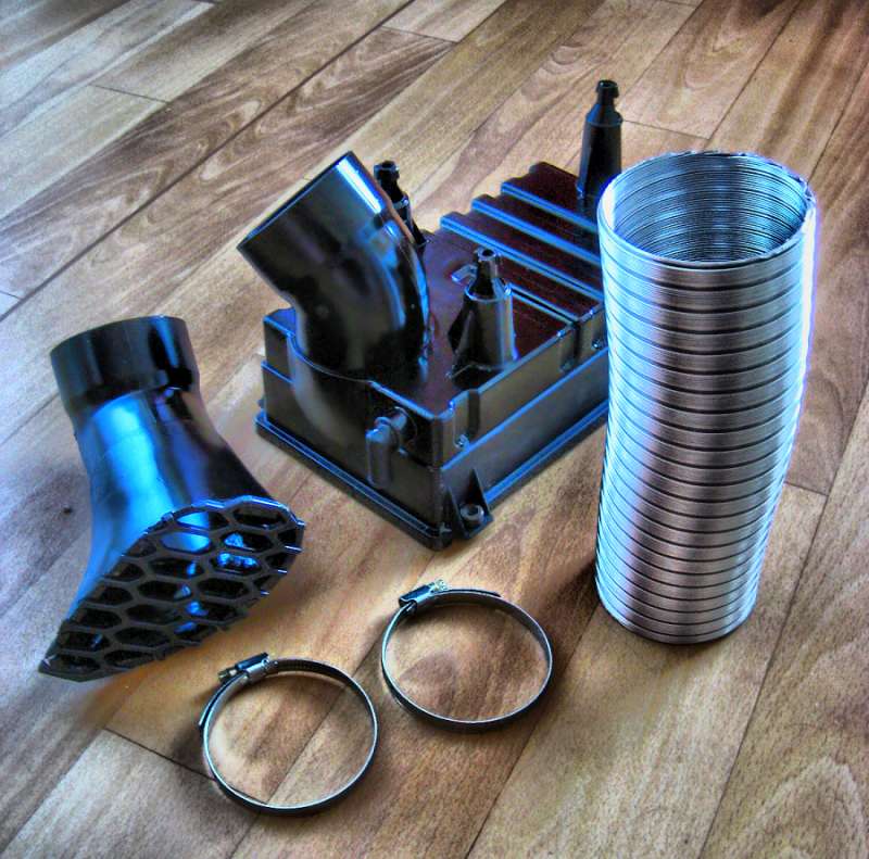 udělal jsem si "trychtýř" přesně na tvar a rozměr krajovýho nasávacího otvoru v RS paket nárazníku a aby to bylo připravený i na větší klapku, udělal jsem to celé v průměru 75mm. Na stejnej průměr jsem upravil i přívod do filtrboxu.