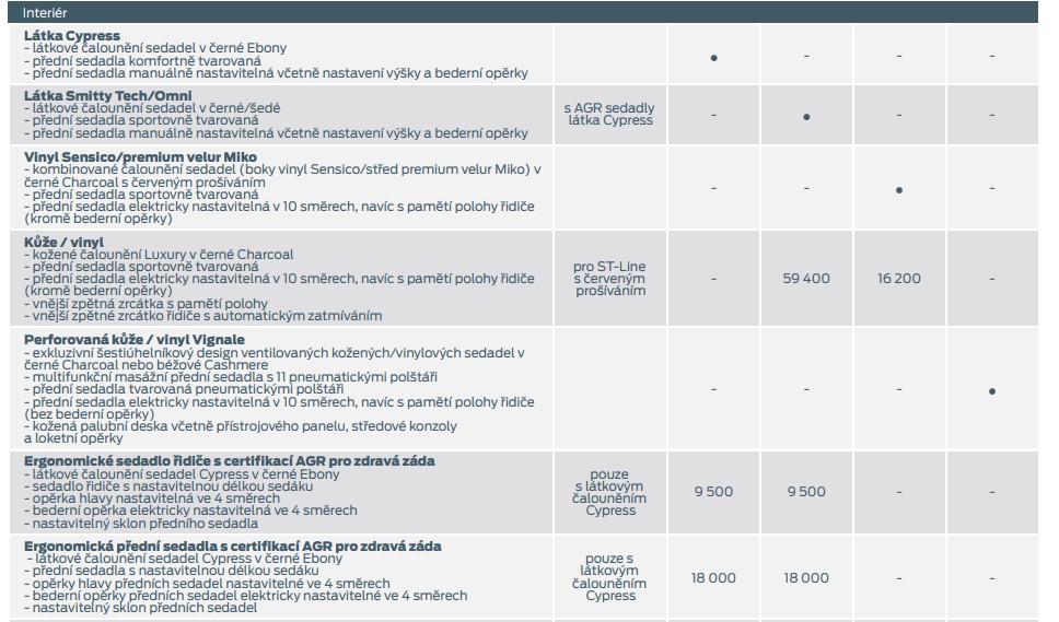 Ve výstřižku to neni vidět, tak jen dovávám, že výbavy jdou ve sloupcích samozřejme Trend - Titanium - ST Line - Vignale