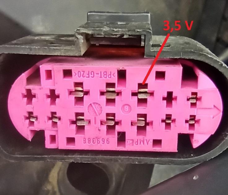 Bez klíčku v zapalování a bez nastartovaného auta je jediné napětí na pinu viz foto a to jenom 3,5 V (na obou konektorech). Nemůžeš mi prosím očíslovat jednotlivé piny ?