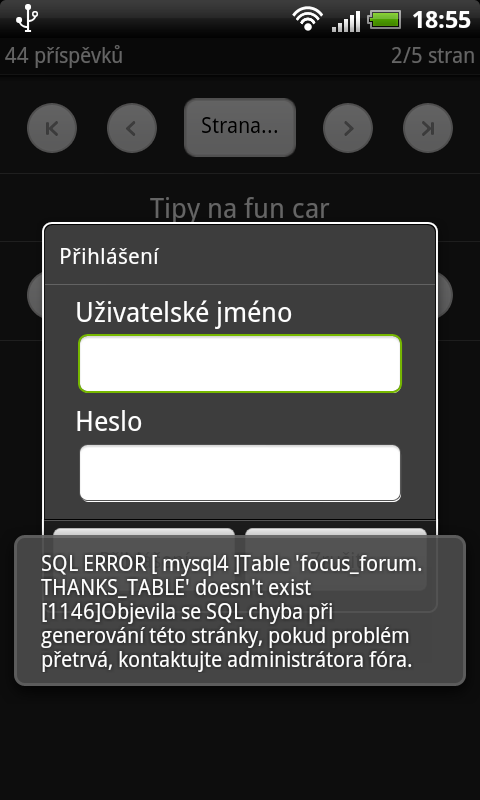 No mě to jde asi tak že vidím všechny fóra, subfóra i témata, ale jakmile otevřu nějaké vlákno, tak to hodí ten error...
