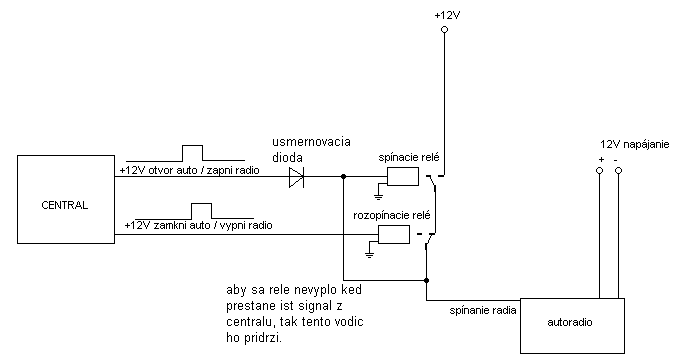 ja uz mam dve rele v aute co zapinaju vypinaju radio podla centralu... len neviem v ktorom mieste idu vodice elektrickych okien...