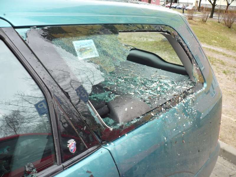 Při bližším prozkoumání jsme zjistili, že jsme na tom dobře, odneslo to "pouze" boční okýnko, což se nedalo říct o Suzuki, která stála vedle.Ta nás zachránila.Naštěstí máme okna pojištěný.