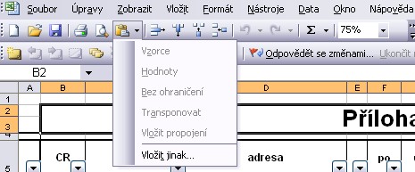 a nebo můžeš zkopírovat co potřebuješ, pak si klikneš do nové buňky a myší klikni na šipečku vedle ikony vložit v menu viz obr. a tam si už vybereš