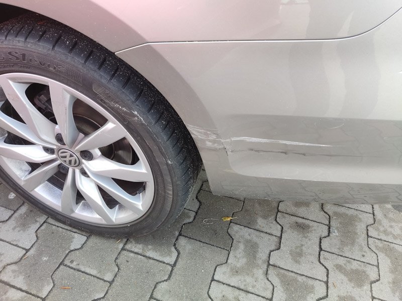 Je to moc nové auto. Na desetiletém už by sis toho ani nevšimnul... hlavně že je to jen blbý nárazník, když se odřou plechy, tak to tam začne reznout. Takže aspoň že ti neudělali větší škodu.