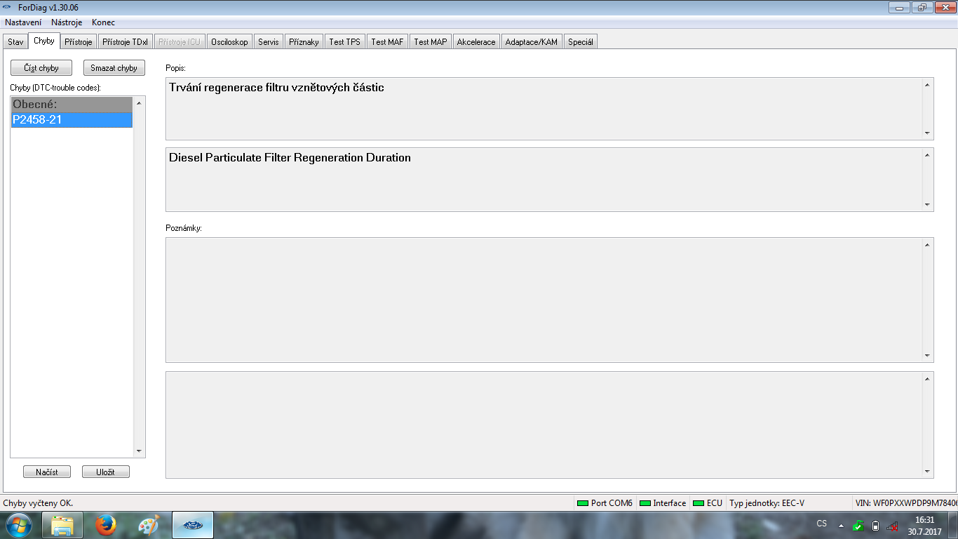 mám focuse 1.6. TDCI 80kw rv.2009 a má najeto 256000km,byl jsem si pro něj v Německu a to měl najeto 145000km.Celou dobu vše ok až teď abych to napsal od začátku protože nevím co s čím souvisí.Prvně při odjezdu z práce mi auto samovolně změnilo jazyk na pc (měl jsem němčinu a najednou to bylo v italštině) a vymazala se průměrná spotřeba (já ji nemazal teď asi dva roky).Potom se nic nedělo asi tři dny až potom jsem chtěl předjet náklaďák a jak jsem podřadil a přidal tak mi na 4000ot. chcíplo auto,vypnul jsem klíček a znovu nastartoval a pokračoval v jízdě.druhý den už to chcípalo při 3000ot a to už jsem měl podezření na palivový filtr. po výměně ok, ale zase šla spotřeba nahoru po připojení diagnostiky jsem narazil na chybu P2458-61 a nebo P2458-21Trvání regenerace filtru vznětových částic a ta nejde vymazat.Auto pořád regeneruje filtr DPF (rozdílný tlak na PDF při volnoběhu je 1,7)Motor není v nouzáku,normálně akceleruje.