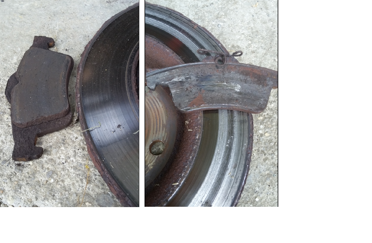 Provedena kontrola brzd. Předek je OK, kotouče hladké a rovné, brzdové destičky ještě 5-6mm. Ale zadní kotouče nicmoc, přidřené třmeny. Pokusím se je zarovnat a pokud se nevejdu do tolerance, nechám dát nové, plus destíčky a oprava třmenů.