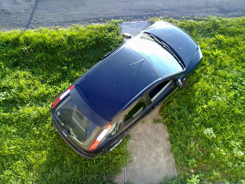 Bohužel rodinná záležitost..smyk, naraz pravym zadnim do betonve zidky, smyk, prikop, kotrmelec..totalka