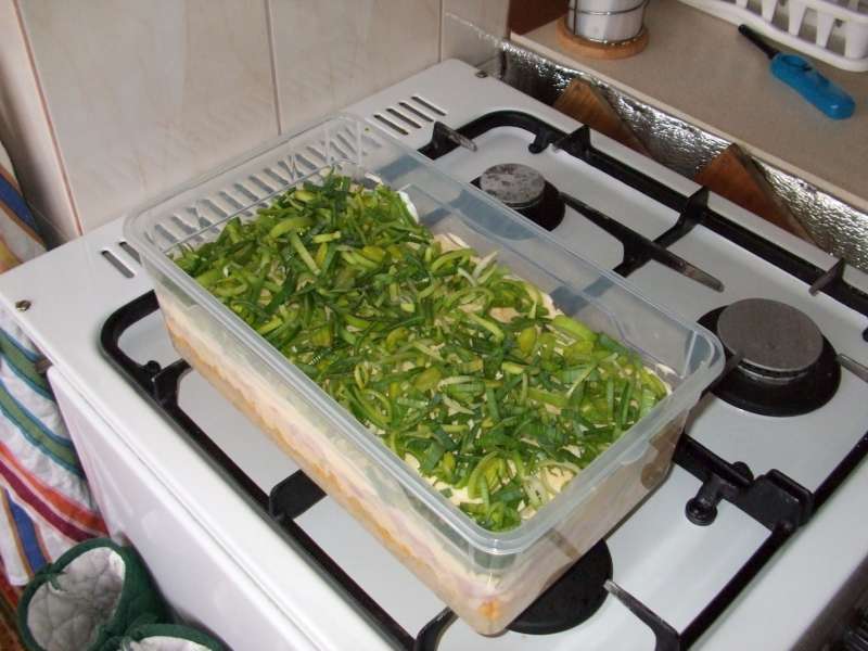 - ozdobiť to všetko pokrajanou zelenou časťou póru