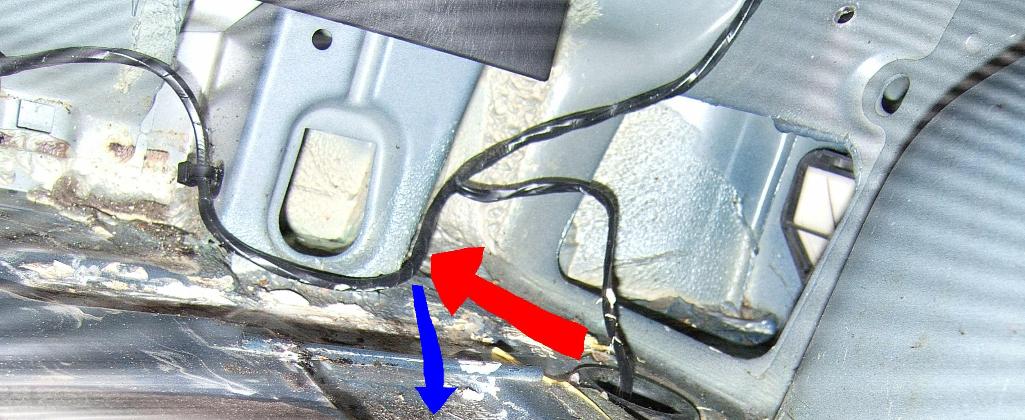 Ciste nahodou jsem zjistil ze mi zateka (take) do kufru. Voda se obevuje tam kam smeruje cervena sipka (jakoby za tim "sloupkem") a odtika "pod" koberec ve smeru modre. Pres svetla mi tam zrejme netece. Mate nekdo nejaky tip kudy se voda muze dostat do mist kam smeruje cervena sipka? Diky.