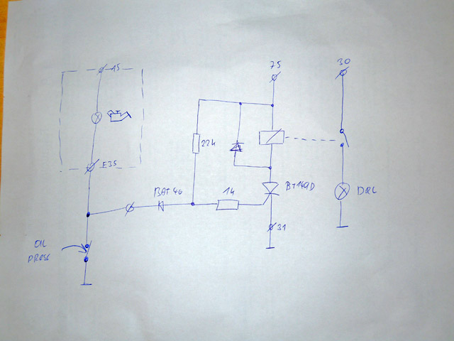 Takze original obrazok pochadza z manualu pre montaz DRLHELLA 2PT 010 177-811 HELLA, tak predpokladam ze sudruhovia z NDR to maju premyslene preco prave tam a nie cez F32