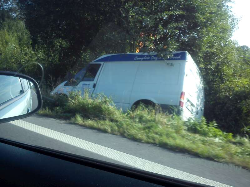 Dneska po cestě do valašského meziříčí.Měl myslím i vozík a strašně foukalo tak jestli se nevěnoval řízení a ktomu vítr ktery maval z autem..