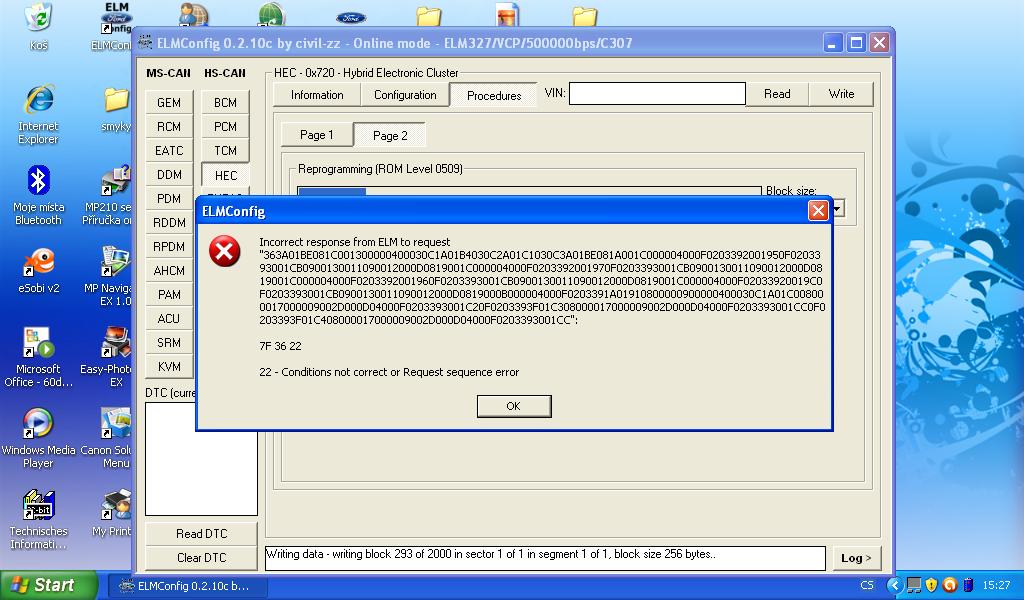 Chcel aktivovat okamzitu spotrebu (co ma prekvapilo kedze FL modely a navyse s velkymi budikmi by to mali mat aktivovane), ale po snahe zapisat danu polozku to hodilo chybu, co ma prekvapilo vsak este viac, ze mal odskrtnute aj ESP a ABS.