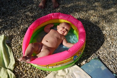 Přidávám jednu fotku z první zahraniční dovolené - teta nám půjčila bazének