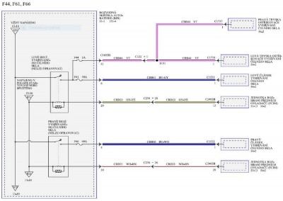 Nastartoval jsem, vypnul ventilátor a zapnul pouze výhřev skla. Po pár minutách se nic nedělo. Při změření napětí na pojistce výhřevu trysek F44, která je na stejném relé jako polovina skla a je dobře přístupná, je tam 0 - napětí tam není.