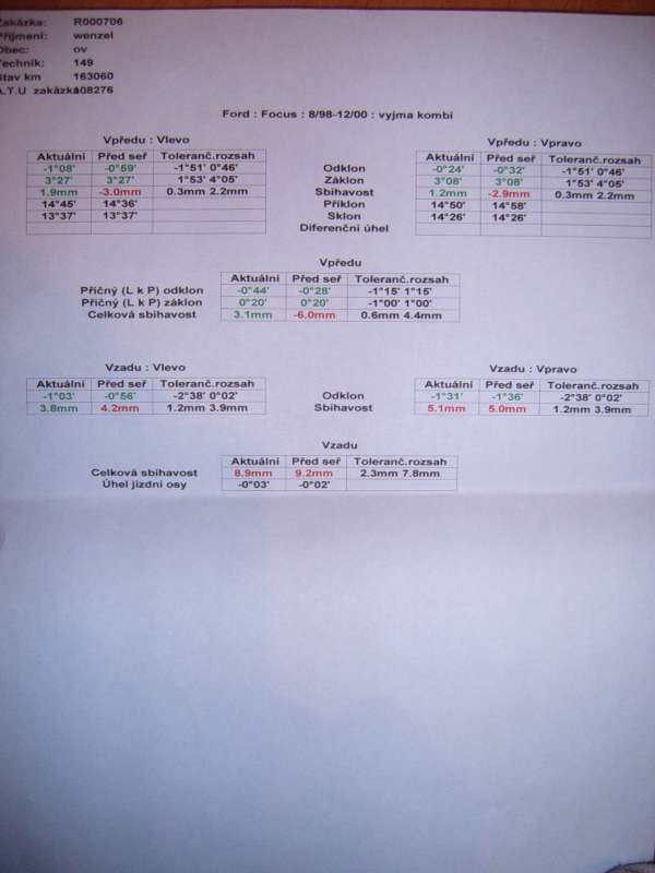 tak tady je protokol z mereni geometrie meho auta, predek mi sestelovali a zadek je pry "vetsi balicek geo" - samozrejme 2x drazsi