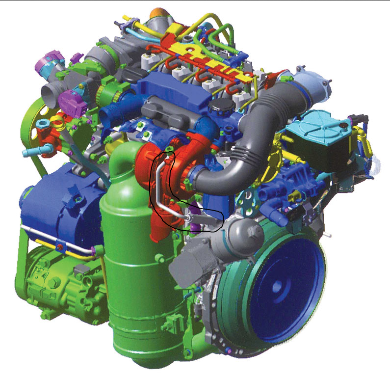 A podobne to ma aj TDCi (toto je z mojho)V12 píše:Na obrazku je posledna verzia eHDI, je jasne vidiet, ze mazanie turba je uz vyriesene uplne inak, ako mal povodny 1.6HDI. mazanie turba je oznacene ciernym - kuk do prilohy.