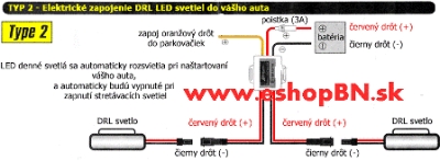 Připojíš DLRky na baterku a další drát na parkovačku.Když sepne světelný senzor,tak automaticky zhasnou DLR.