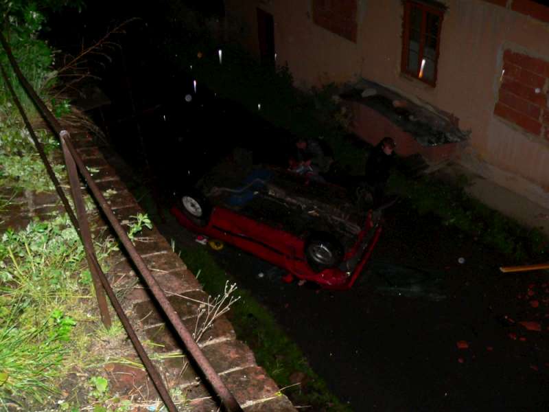 Jednou jsem byl svědkem ošklivé autonehody. Bylo to při rally Český Krumlov, spali jsme v obci Křemže. Večer jsme šli do místní restaurace takovou slepou ulicí která končila vysokým obrubníkem, trávníkem, kovovým zábradlým, 2,5m hlubokým příkopem kde byl chodník a silnice a na druhé straně baráky. Najednou šílenej hukot, sotva jsme se stačily rozutéct a kolem nás se prohnal šílenec s autem. Pak následoval náraz na obrubník a dlouhý let za zvuku vytočeného motoru, ten magor ani neubral. Let zakončil náraz na střechu protilehlého domu za ohromné rány bortících se plechů se auto sesunulo na zem střechou dolů. Nedovede si představit ten pocit když se nám tohle odehrávalo před očima. Běželi jsme k tomu zábradlí a uviděli jsme tu zkázu. Někteří z nás hned seskočily dolů. Já až po chvilce. Vyndali jsme z auta pěkně pomláceného řidiče a dávali mu první pomoc, pěkně z něj táhl chlast. Po chvilce řekl že je v autě kamarád. Toho byla velká práce dostat ven, byl skřípnutej pod palubkou a ruka mu koukala ven. Pěknej hnus. Docela dlouho jsme čekali na nějakou pomoc. Nejdříve přijeli hasiči, ale zřejmně je to hodně sebralo a nebyli schopni nám pomoci. Z toho druhého při snaze mu dát masáž srdce mu z úst vytékala krev. Zřejmně velké vnitřní zranění. Když přijela záchranka tak jsme odešli a už jsme neměli ani chuť jít do hospody. Pěkně hnusnej zážitek.