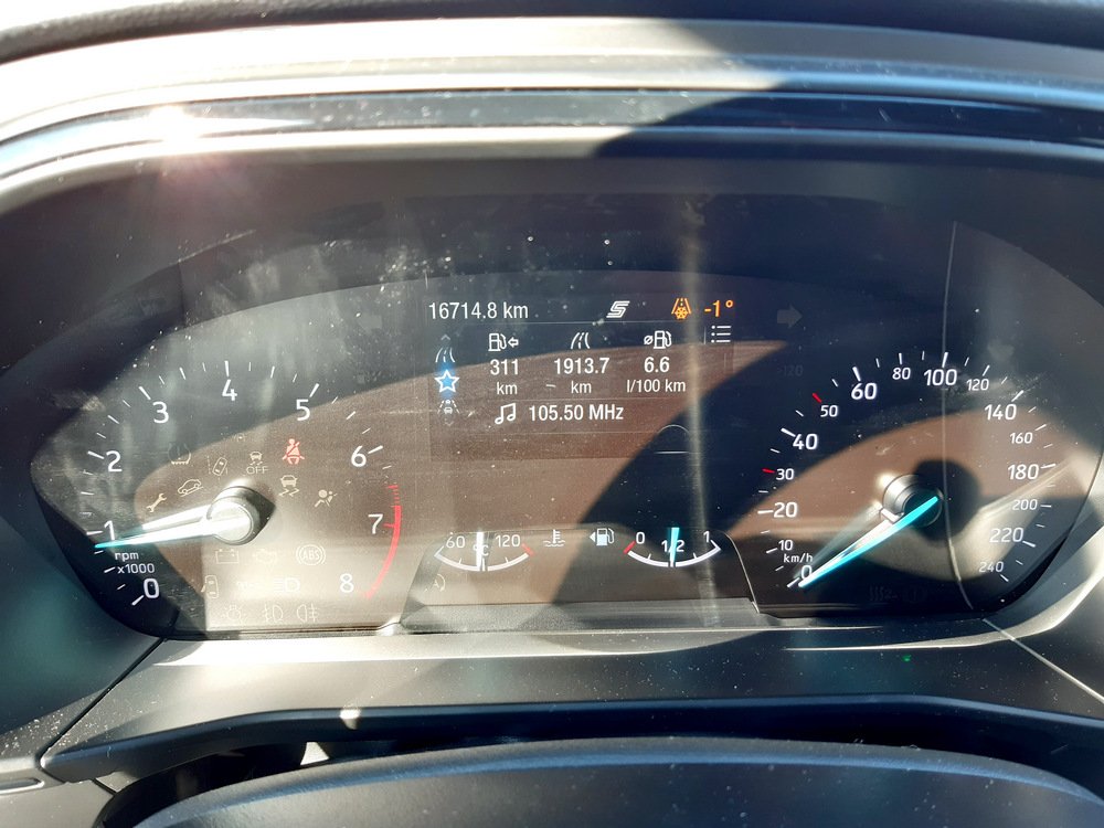 Palubka je z mého pohledu povedená. Elegantní, nepřeplácaná. Tablet mi nevadí, je pěkně při ruce i v zorném poli řidiče. Sync3 (zde verze 3.2) bohužel moc nakamarádí s budíky - grafika komplet jiná, jako by to bylo z jiného auta. Noční téma to ale o dost vylepší. Z hlediska členění ovládání se mi líbí víc Sync2. Sync3 má výhodu v pohotových reakcích a hlavně v češtině jak na displeji, tak u hlasového ovládání - toto těžce závidím. Jako líbil by se mi - ne že ne. Android auto, Waze atd. jsem nevyzkoušel, protže se mi ani se 4 různými kabely nepodařilo připojit... Středová konzola s držáky nápojů je trochu krok zpět. V MK3 Titanium byla vymazlená i s možností odložit vyšší lahev (posuvné dno). Nádherné jsou dveřní výplně - to má opravdu šmrnc.
