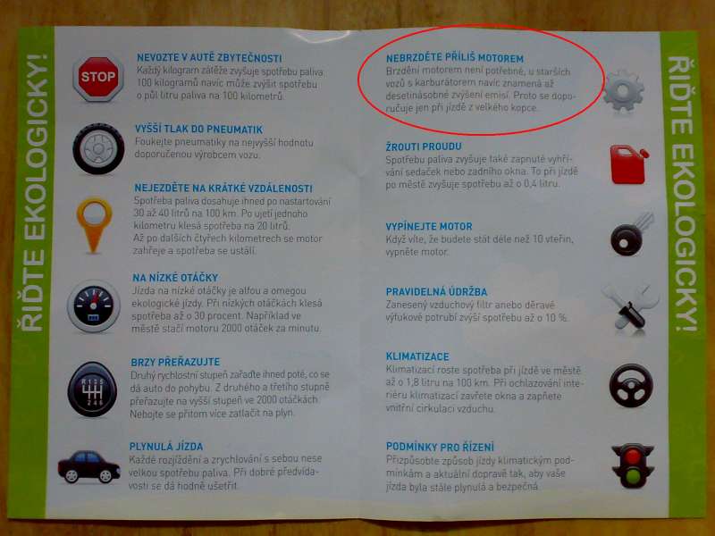 Jenže pak to posrali ekologové, takže současná auta kvůli emisím vstřikujou palivo i za jízdy z kopce bez plynu a vypínají ho jen za určitých podmínek. Nízké emise mají absolutní prioritu i za cenu vyšší spotřeby. A k tomu nutnost víc používat brzdy. Nahnat je do Mišelinky tahat gumy, hajzly jedny intelektuálský.