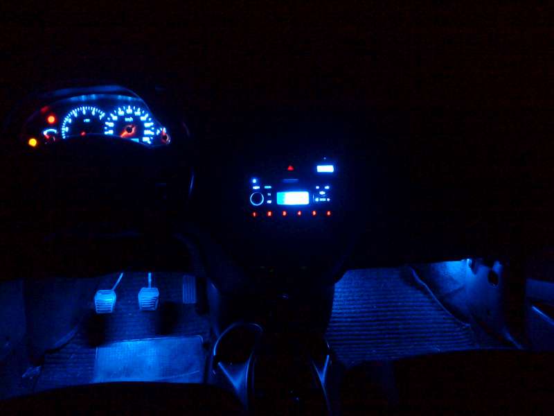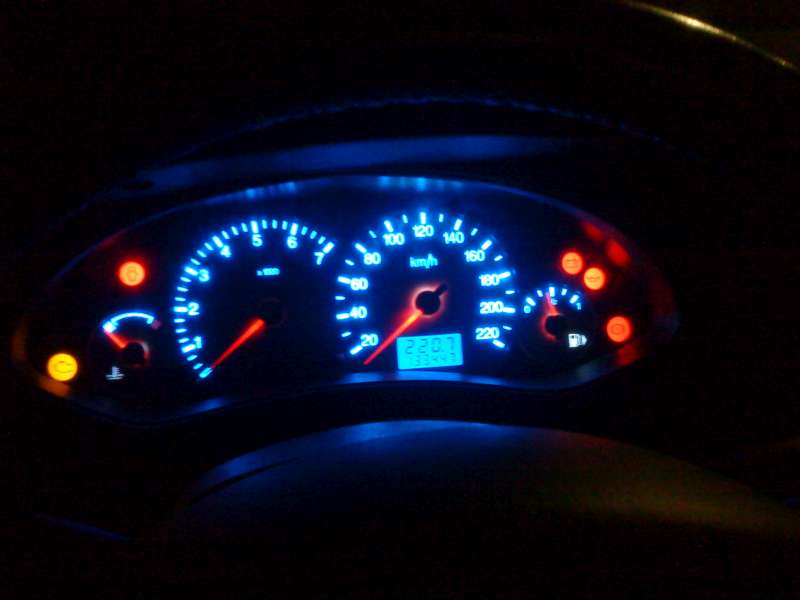 Hele klasika.. v Gesu za 25 ,- kč jeden pásek po 3 ( nezalitých ) diodách. nekde se fouknul celej pásek ale v rádiu se museli odletovat ptž tam už SMD jedny měli. ty zelený... momentáně sem udělal návrh v PC na ,,Ventilaci,, která pude taky do modra.. vyvrtal sem vrtačkou ( podobně jako damon ) postavičky a čísla a přes ně pak nalepím vytisklou šablonu kterou hodim do bezbarvého laku ;) a nikdo ani nepozná že jsem se v tom hrabal... :idea: na první pohled