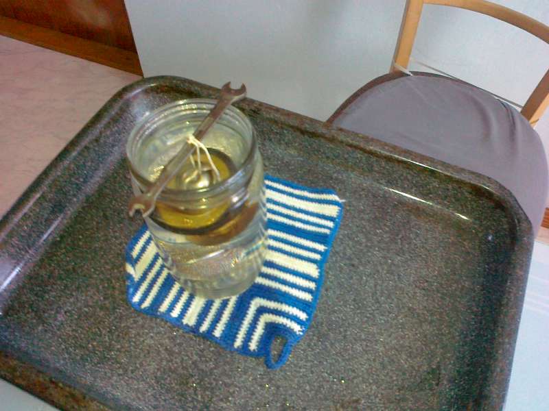 Tak jsem tomu včera věnoval dopoledne. Demontoval jsem termostat a uložil ho do nádoby s vroucí vodou z konvice (viz foto). Termostat se dle mě vůbec neotevřel, tedy soudím s porovnáním z videa na: http://www.youtube.com/watch?v=uHc3RiXXLiE