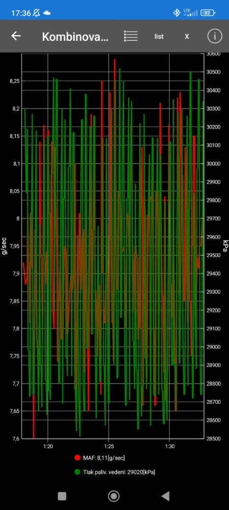 Ahoj, udělal jsem zas reset řídící jednotky a součásti se zobrazily jako dokončené. Mohl by někdo prosím porovnat graf? Udrlal jsem kombinaci MAF a tlak palivového vedení? Mockrát děkuji