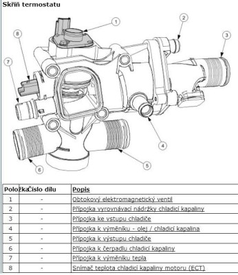 Termostat je jen jeden, součástí toho plastového celku jsou i dva elmag. ventily, které umožňují rychlejší ohřev motoru. Ty řídí jednotka motoru.
