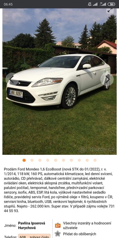 Ex: Ford Mondeo kombi Mk4,5 2.0TDCi 120kW|MR2012|295tkm
