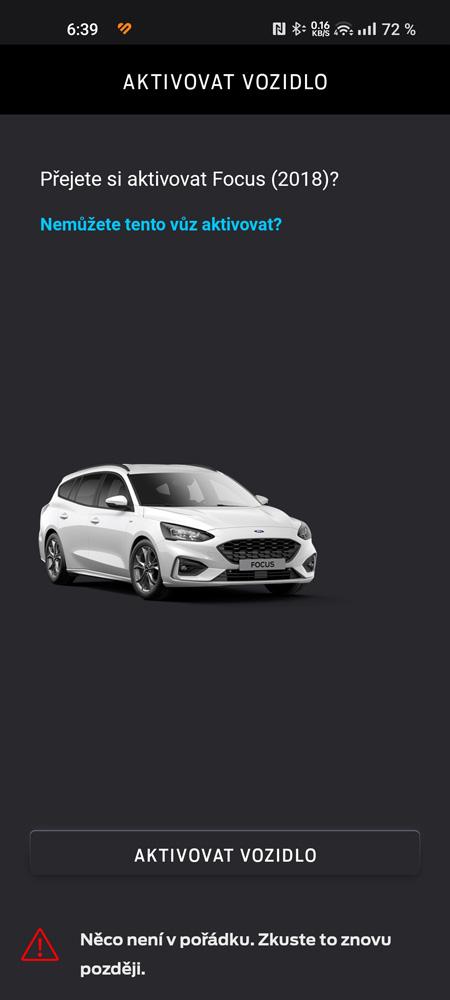 Nainstaloval jsem si tu druhou aplikaci s černou ikonkou a tam mi po kliknutí na aktivovat vozidlo hned vyskočí hláška viz foto.
