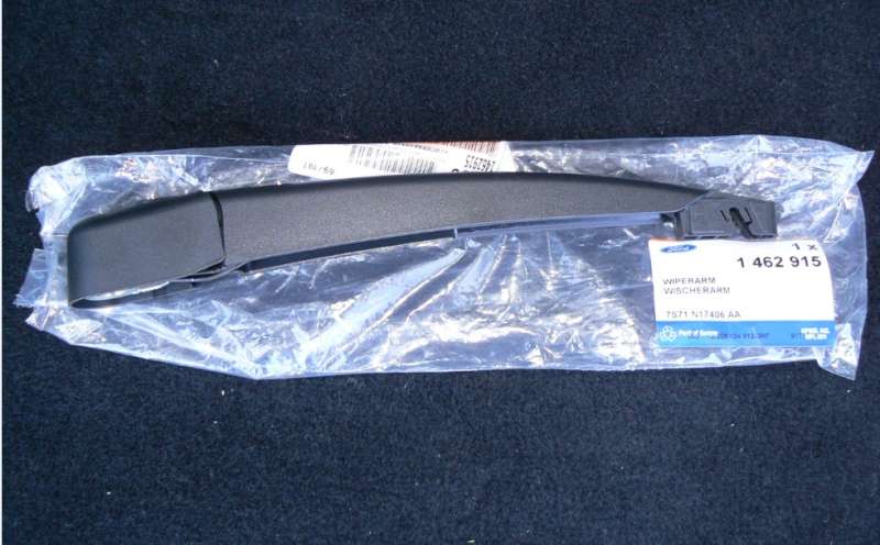 Tak už mám nový stěrač. Potěšující zprávou je, že rameno obsahuje i krytku, takže stačí objednat díl č.1462915 (rameno stěrače včetně krytky -Focus kombi, nové Mondeo kombi, Kuga). Cena je 720,-Kč včetně DPH a stěrač je pro všechny jmenované vozidla stejný. K tomu je potřeba koupit už jen stěrač jako takový, který se stejně časem opotřebí a  musí se kupovat nový. Na kombi je číslo stěrače 1462914 (délka 30 cm). Mně objednali resp. následně i prodali stěrač č. 1404802 (stěrač na 5tidveřovou verzi) a ten se tam také vleze. Jeho délka je 35 cm a je úplně tip ťop. Cena rameno+krytka+stěrač byla 996,-Kč.
