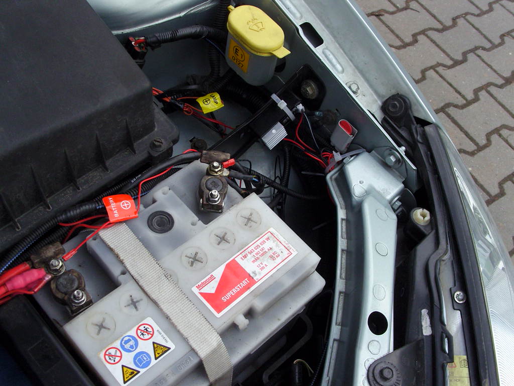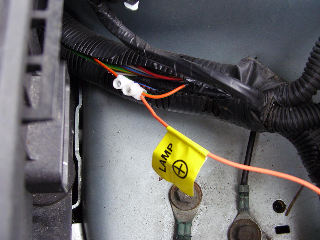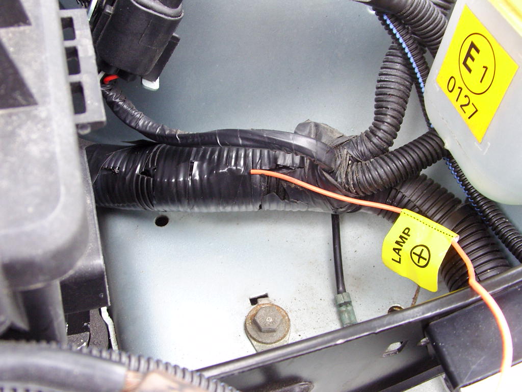 Přímo v patici parkovačky našel + pól. Rozfiknul jsem to přímo u parkovačky, propojil čokoládou, protáhl pod bakelitovým krytem světlometů. Do "hada" bych raději nelezl.