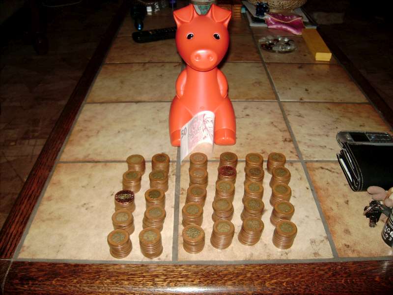 Jo a dneska jsem schválně otevřel pašíka, abych viděl, co v sobě skrývá. Od 16.12.2007 nekouřím, od března 2008 si každý týden v neděli dávám do pašíka 350,- a po zdražení jsem začal dávat každý týden 400,- Každá hromádka má 10ks 50,- mincí a jelikož mi jedna chyběla, tak je tam ta papírová. Sorry za OT, ale posuďte sami...