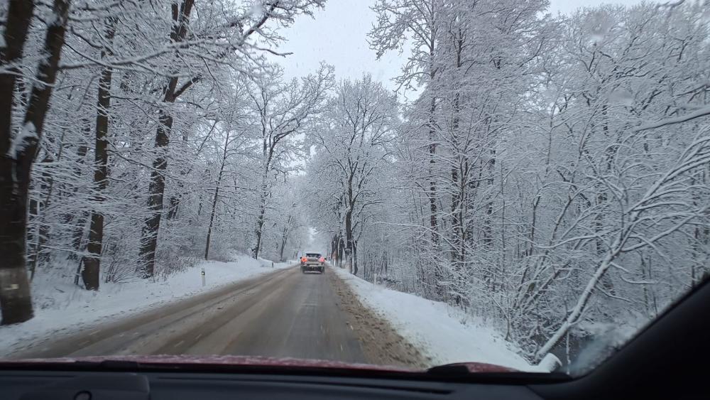 Tak od včerejška cca od 16. hod mírně sněží... to hlavní má teprve přijít, cesta na Krumlov a Krumlov vypadá takhle :D