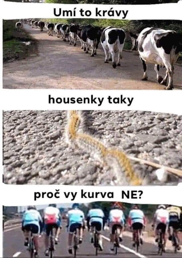 Jinak jak píšeš, když si tam jede sám nebo jedou za sebou, tak se člověk snaží jim dát co nejvíc prostoru, neohrozit je, prostě na pohodu, ale když tam mantáci jedou vedle sebe, na blbých místech, grrr. Vyhnat tu pakáž ze silnic...