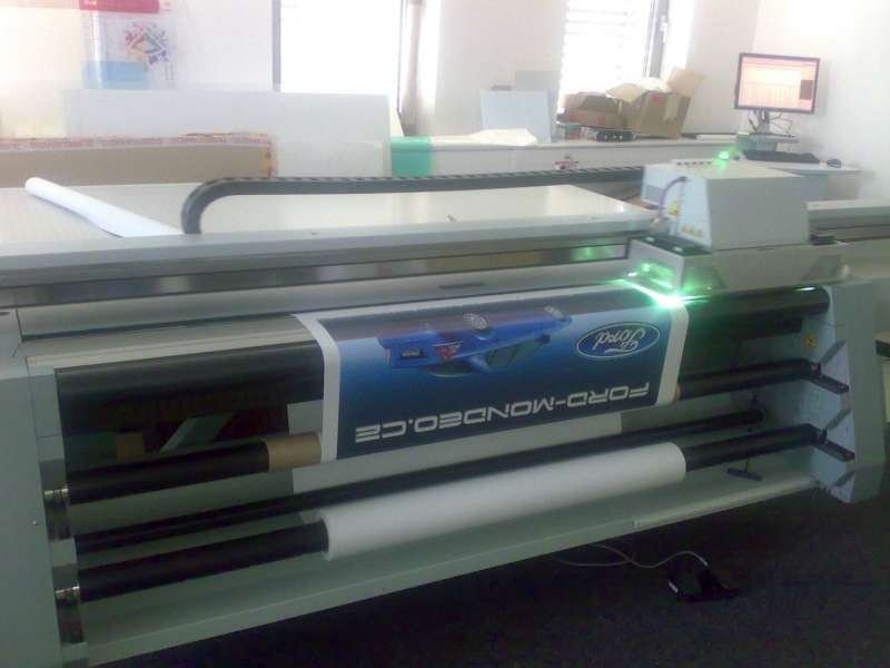 Dlouho je to uv ink flatbed a roll to roll . Jsou tam 2 litrové bagy s inkoustem CMYK + white. Max šíře role je 22Ocm a deska 250cmx125cm a síla do 48mm. Tuhle mašinku mám tuze rád.