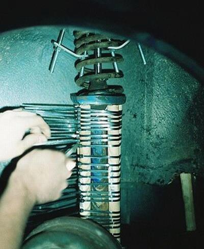 Ne, ta miska je pohyblivá a on seřizuje předpětí pružiny :mrgreen: Joooo, štelovací podvozek, kdo z vás ho má? :mrgreen: