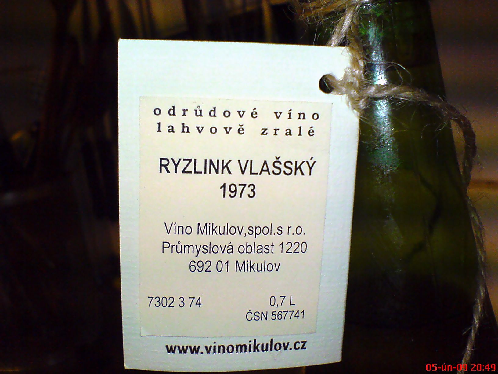 Ryzlink vlašský 2003 pozdní sběr, MVZ Bzenec