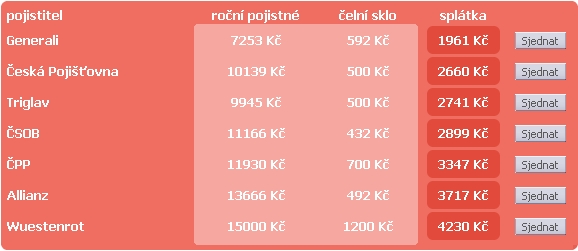Tady jsem si udelal porovnani, ale zda se mi to nejak malo (generalli) na to, ze jsem zaskrtnul pojisteni all risk, coz by melo bejt na vsechno