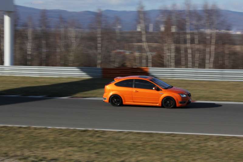 Ford Focus II 2.5T ST, 3 dv.,Electric Orange byl, je Golf GTI VII Performance Pack