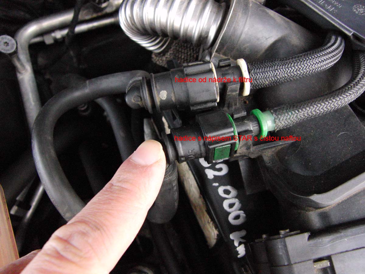 Trochu jsem to zdokumentoval a přikládám foto. Když jsem si celé vedení prohlížel, tak možná by stačila odpojit hadice s napisem STAR (bezproblémový přístup) a z tohoto místa provést natažení nafty přes celý systém, žádám tímto odborníka (např.fokiho), zda-li je to možné tak provést.