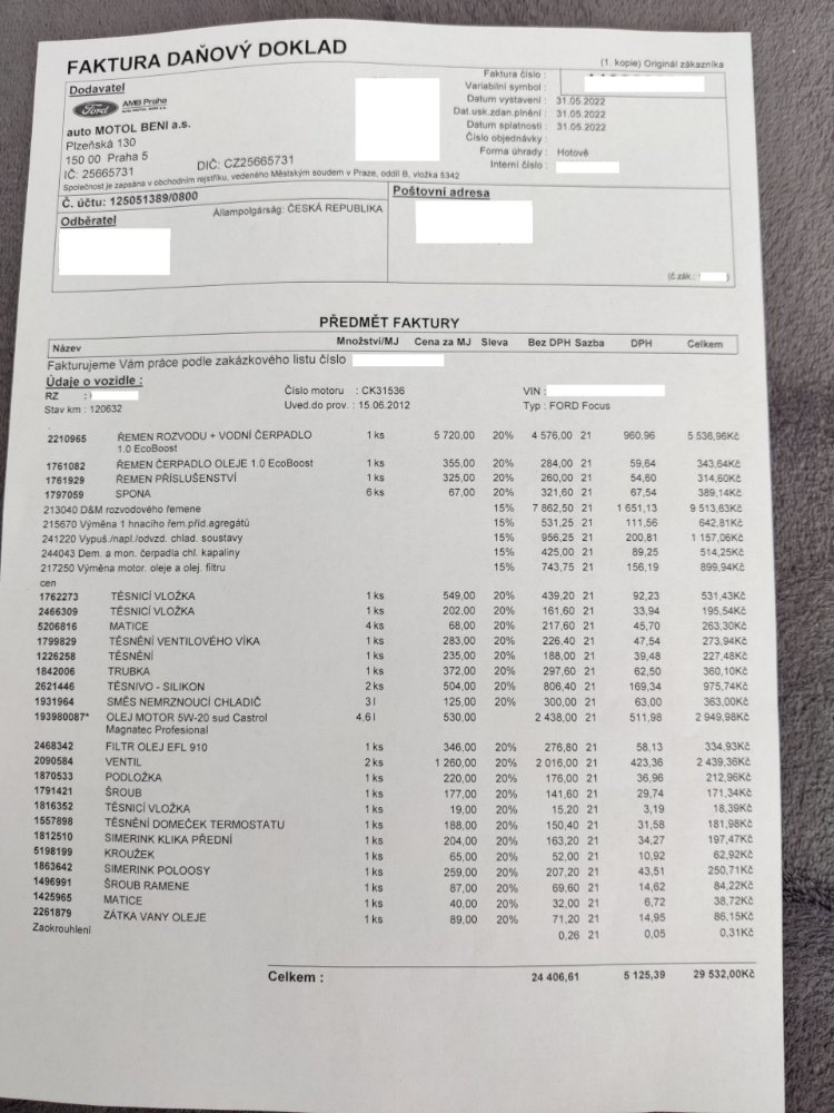 Žádal jsem výměnu rozvodů včetně řemínku čerpadla oleje,kontrolu sacího koše a výměnu oleje.