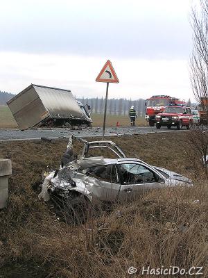 ten musel předjíždět a ten kamion mu ustřelil zadek ale jak se zas dostal dolů do rygolu a značka celá strom taky předek má docela dobrý a zábradlí na můstku taky