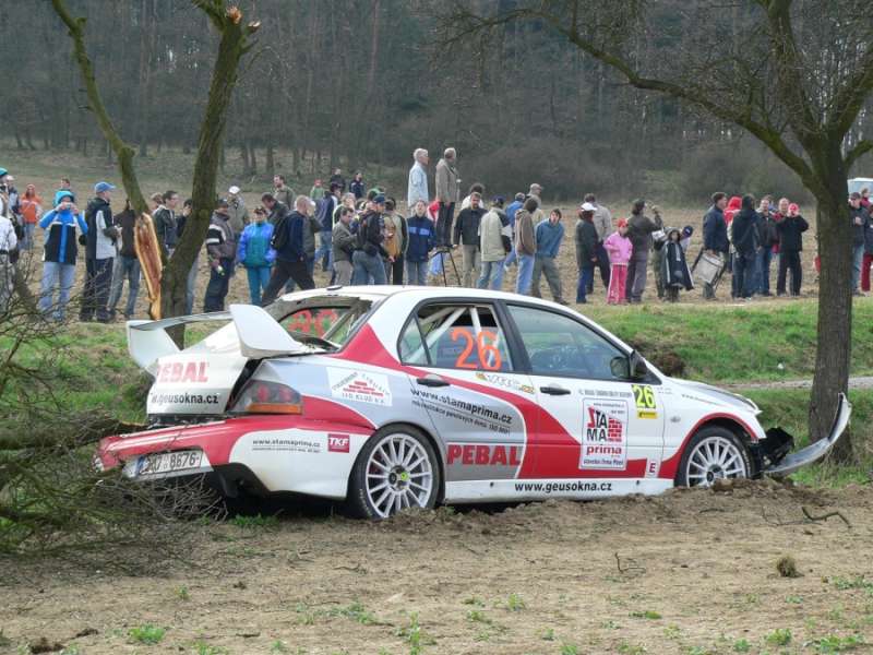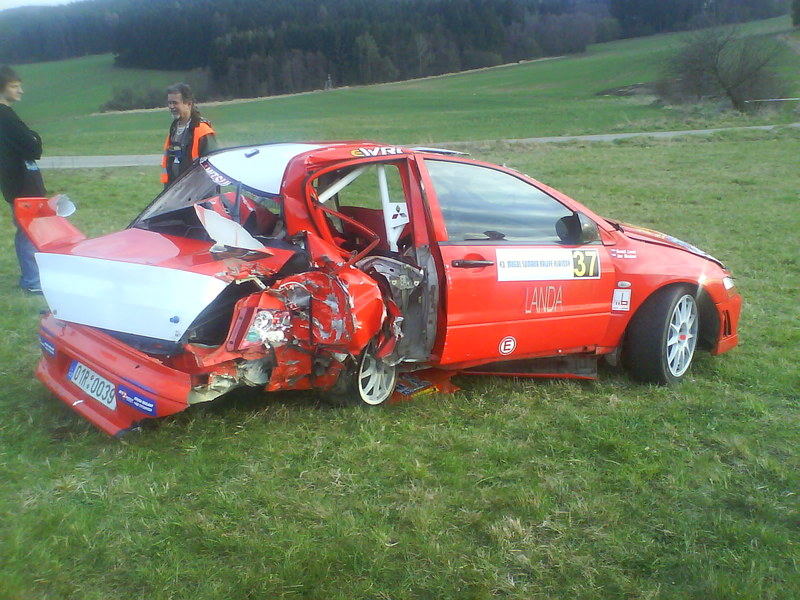 Orig komentar : Na přejezdu z RZ 11, kde se start a cíl zkoušky nachází zhruba 700 metrů od sebe, do sebe v jedné z nepřehledných zatáček se Loeb čelně narazil s Rautenbachem.