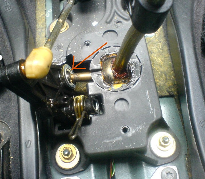 Dnes jsem "trénoval" na svém autě výměnu pružiny, budu to dělat u Focuse mého otce. Při té příležitosti jsem si všiml spadlého plastového futýrka, které má být nasazené na kuličce od táhla řadící páky. Futro mám z šedé hmoty, na té kuličce musí být nacvaklé, jinak je mezi kuličkou a tím černým plastem vůle, které se přenáší na řadící páku při zařazené rychlosti. Foto jsem si vypůjčil ve vláknu.Alonso68 píše:Po dlouhé době s mým autem jela manželka a upozornila mě na vůli řadící páky. Při zařazené rychlosti má páka u hlavice 1,5-2cm vůli do stran. Při vyřazení je to OK. Focus má skoro 200t km.
