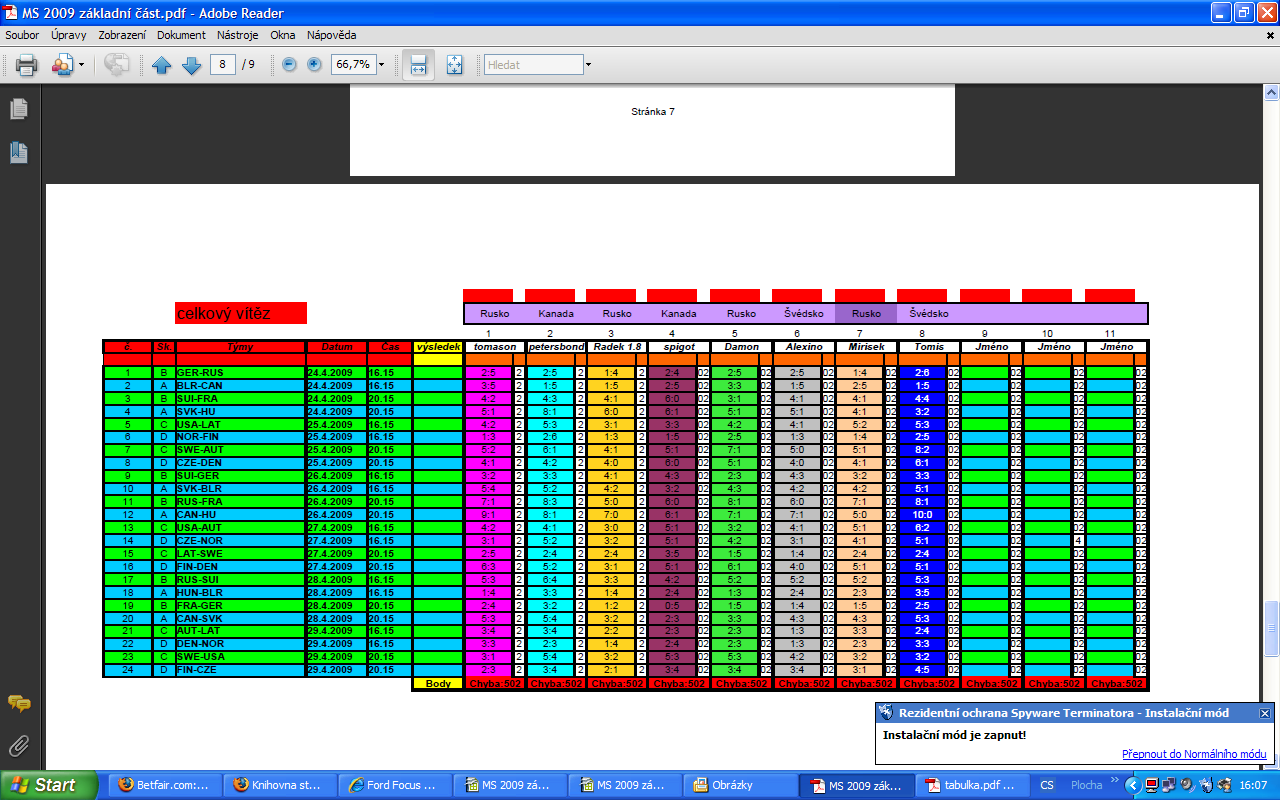 Re: MS 2009 V HOKEJI SOUTĚŽ!!!