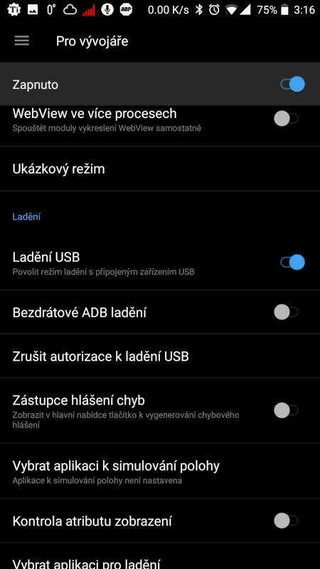 Zbytek je v nastavení pro vyvojare, které musis odkryt - asi 10x rychle za sebou poklepes na "cislo sestavení" v nastaveni, sekci o telefonu